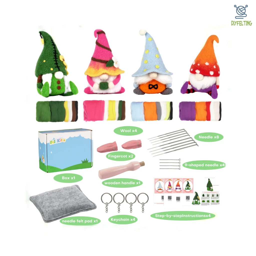 Unleash your creativity and dive into the relaxing craft of needle felting with our all-inclusive DIY kit. Designed specifically for beginners, this set empowers you to create a charming collection of four unique, faceless gnomes, each bursting with personality and vibrant colors.